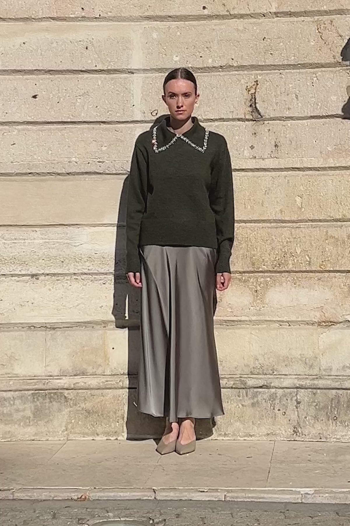 Yün karışımlı rahat kesim triko, yakasında bulunan strass taş detayı ile harmanlanan özel bir tasarıma sahip. Dikkat çeken detayı stilinizde şık bir aura yaratan triko, etek ve çizmelerle rafine bir sonbahar-kış görünümüne evrilebilir.